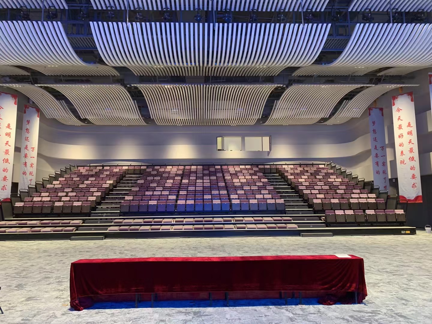 For this project, Leadcom installed Molio Wood Axis auditorium seating for a telescopic system. Molio series are designed for use in spaces where audience sightline, audience comfort and seating capacity maximization are needed. Its slim profile of 20-inch center width is best for wide and safe row access when the seat and armrests are tipped up. Molio Wood Axis is upgraded from the standard Molio series to a smooth spring and damping tip-up seat mechanism, which allows quiet and elegant tip-up operation.
