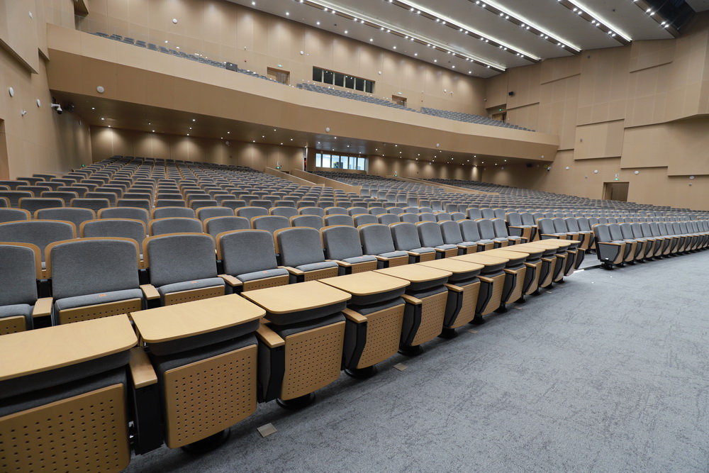 For this project, Leadcom installed Molio Wood Axis auditorium seating for a telescopic system. Molio series are designed for use in spaces where audience sightline, audience comfort and seating capacity maximization are needed. Its slim profile of 20-inch center width is best for wide and safe row access when the seat and armrests are tipped up. Molio Wood Axis is upgraded from the standard Molio series to a smooth spring and damping tip-up seat mechanism, which allows quiet and elegant tip-up operation.